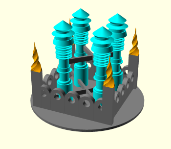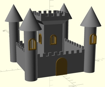 Here's my final castle render! All elements were created in OpenScad except the shells. I renβ¦