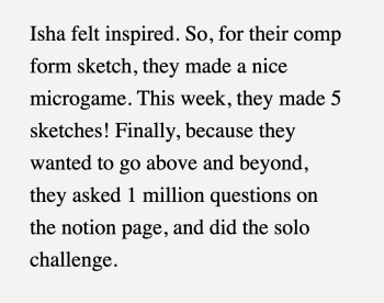 My sketch based on Aabha's instructions! My version of Tweety is definitely off brand :)