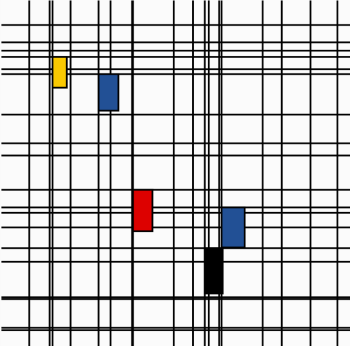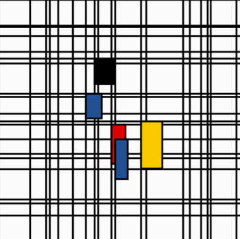 Recreation of Piet Mondrian's Composition with Yellow, Blue and Red 1937β42.